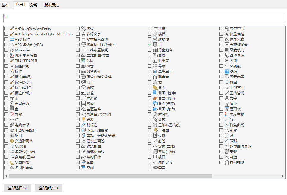 例如,如果指定分类定义应用于门和窗,则分类会在图形中所有门和窗样式的“分类”选项卡上列出。也可以在“特性”选项板的“扩展数据”选项卡上选择与各个门和窗对象符合的分类。