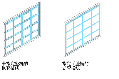 幕墙单元的竖梃是指格线单元之间的边缘。主要格线和每条嵌套格线都有独立于其它格线定义的竖梃。