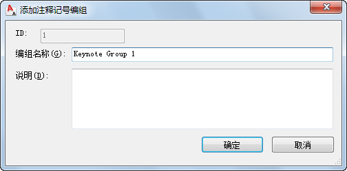 将显示“添加编组”对话框,其中有一个只读的 ID 字段显示了正在添加的编组的数据库标识符。