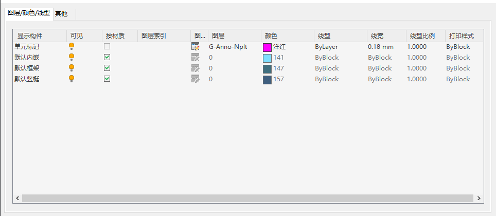 幕墙单元的默认模型显示构件