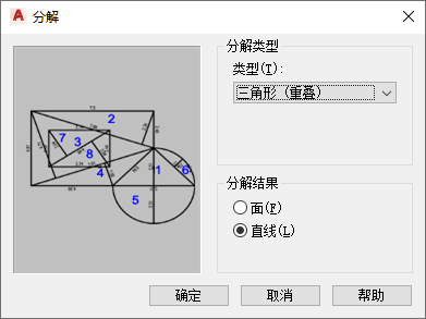 使用以下步骤可指定将空间分解为的子图元类型,以及在分解后将分解的空间转换为的 AutoCAD 图元类型。