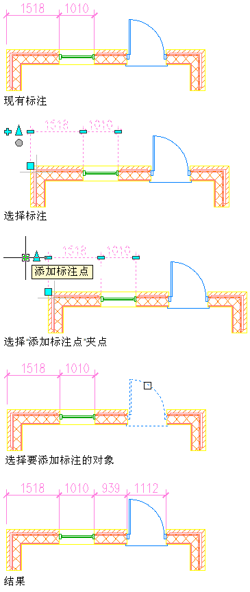 选择要将对象附着到的 AEC 标注,然后单击“添加”夹点 (