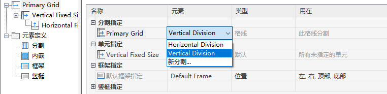 分割定义格线方向(即格线单元和竖梃的方向为水平方向或垂直方向)以及分割类型(单元的数量与尺寸)。