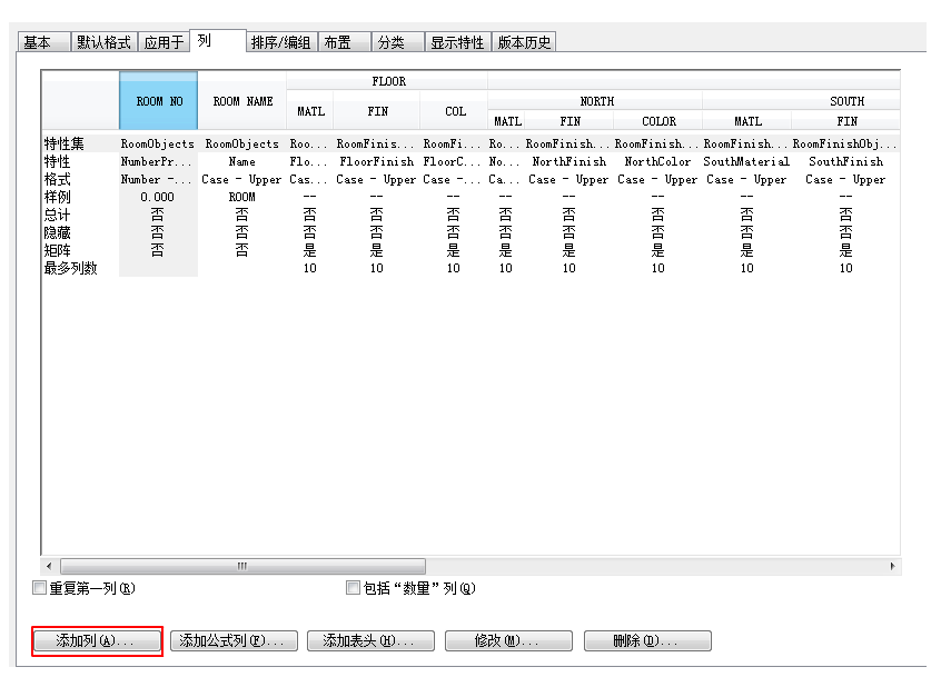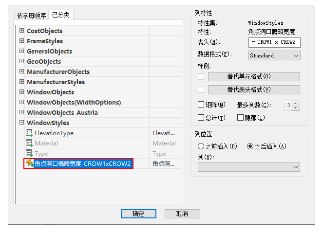 在“添加列”对话框中,在“窗样式”下,选择“角点洞口概略宽度 – CROW1 X CROW2”。