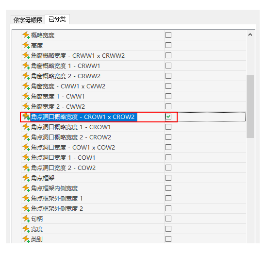 在“窗样式”下,选择“角点洞口概略宽度 – CROW1 X CROW2”。