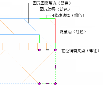- 图案填充:此显示构件控制临时轮廓的图案填充的图层/颜色/线型特性。这与指定给对象本身的任何图案填充无关,而且仅在在位编辑模式下显示。在默认情况下,此构件处于关闭状态。