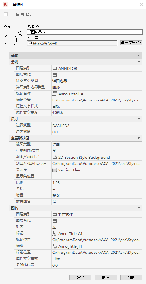 | 边界线型 | 详图边界 | 定义详图边界的线型。 |