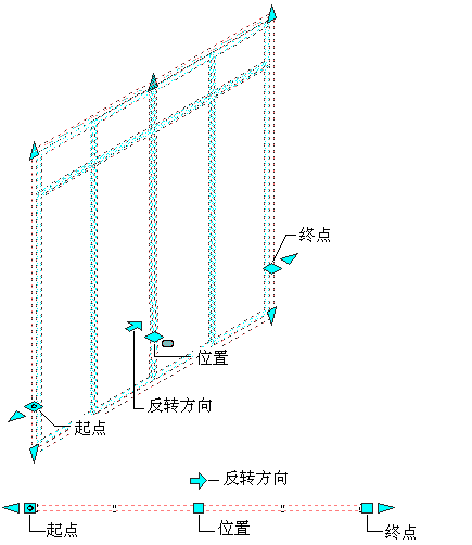 查看幕墙的“起点”、“终点”、“位置”和“反转方向”夹点