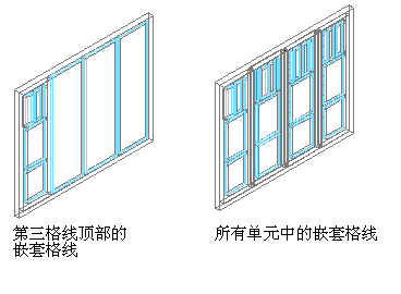每个幕墙格线都是一维的,且都带有水平或垂直分割。通过在幕墙样式中嵌套格线,可以创建从简单到复杂的各种图案。