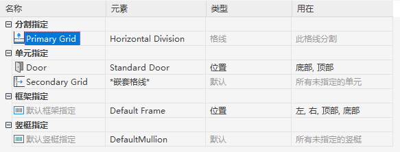 每条格线都有自己的单元指定。可以指定单元包含另一条格线、内嵌板或一个对象(如门或窗)。
