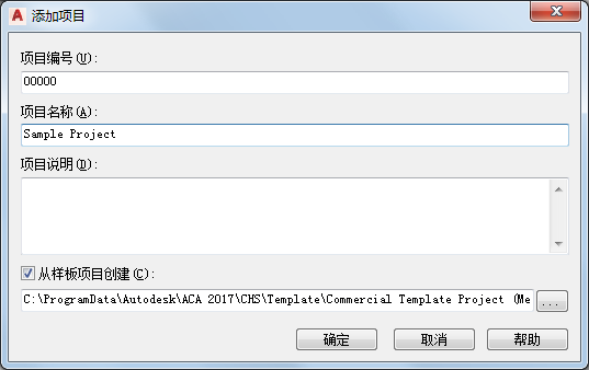 注: 在创建新项目时,不能直接指定所有支持文件和路径,只能定义名称、编号、说明和项目样板。其余的设置只能在创建项目后定义。如果基于样板创建项目,则该样板的设置将用作初始设置。