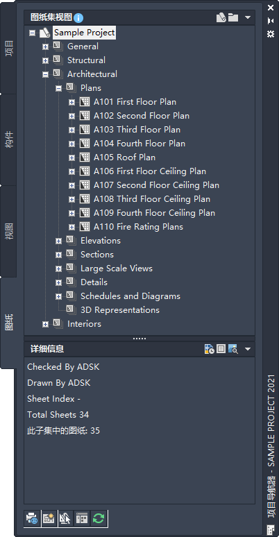 AutoCAD Architecture 2027 工具集 项目导航器中的项目图纸集