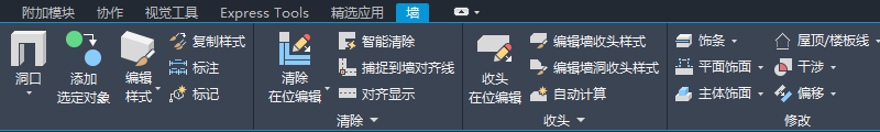 墙收头的在位编辑选项卡