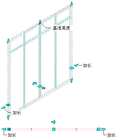 查看幕墙“加长”和“基准高度”夹点