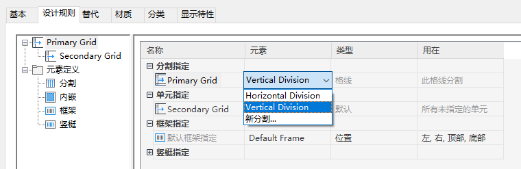 - 单击该格线的“元素”列,然后从列表中选择一个分割定义。