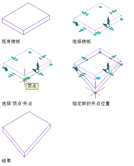 使用楼板/屋顶板顶点夹点的步骤