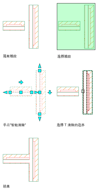 T 清除可作用于多个墙交点,但是只能为边界指定一个墙段。
