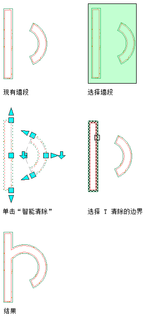 对于弧形墙段,T 清除的工作方式与上述工作方式相同。