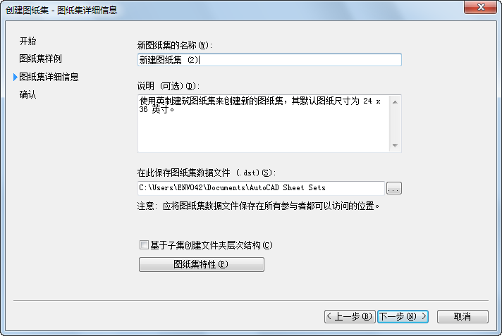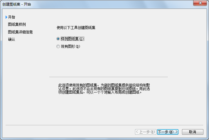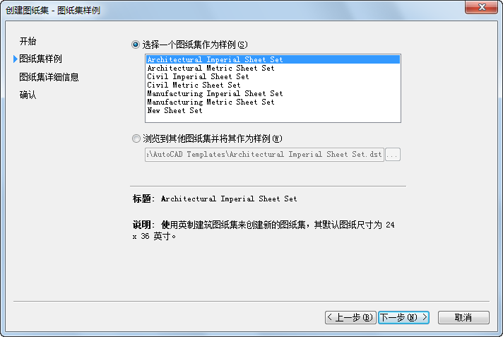 此时将显示“创建图纸集”向导。该向导可帮助您创建新的图纸集样板。