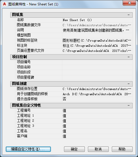 如果对 AutoCAD Architecture 2027 工具集 项目使用图纸集样板,则无需填充下列字段: