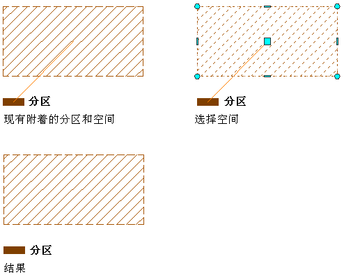 在所附着空间或分区的连接线上单击“拆离”(减号)夹点。