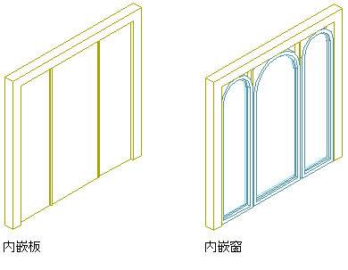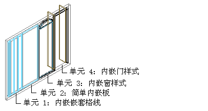 可以创建新的元素定义,并将这些定义指定给幕墙。例如,可以创建多个内嵌定义,然后将不同的内嵌指定给格线中的特定单元。