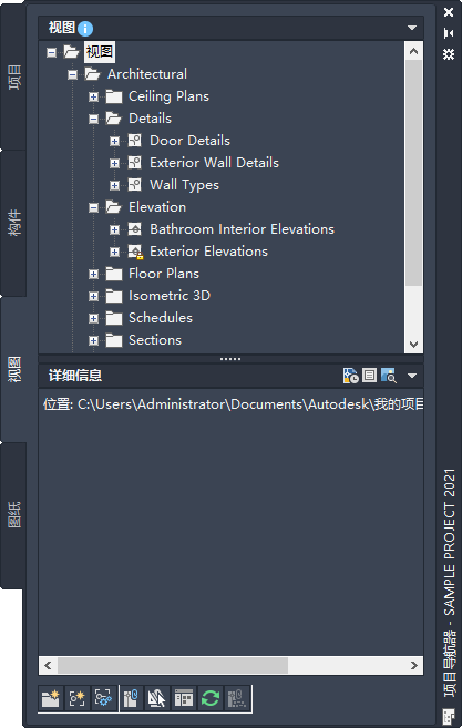 在“项目导航器”的“视图”选项卡上,可以创建建筑数据的各个视图。视图中包含构件,是在项目内添加注释(如备注、标记)和尺寸标注的主要位置。创建视图图形后,可以在其中创建模型空间视图。