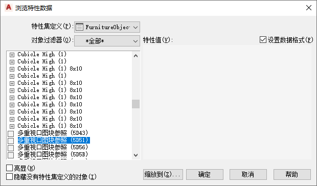 仅显示已附着选定特性集定义的对象 选择“隐藏没有特性集定义的对象”。