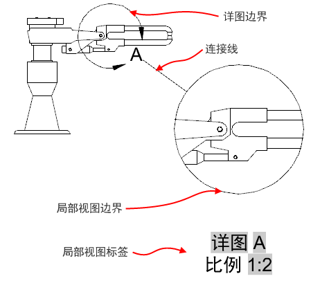 如果删除详图边界,相应的局部视图也将删除。如果删除局部视图,详图边界、标识符和箭头也将删除。