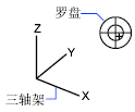 移动十字光标时,三轴架根据坐标球指示的观察方向旋转。要选择观察方向,请将定点设备移动到球体上的某个位置并单击。