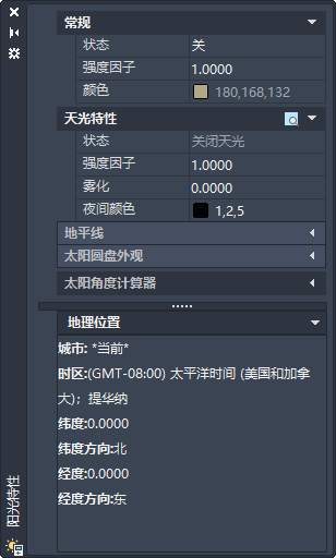 显示从正北方向顺时针到阳光(沿地平线)的角度。该设置是只读的。