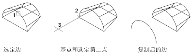 可以复制三维实体对象的各个边。边被复制为直线、圆弧、圆、椭圆或样条曲线。