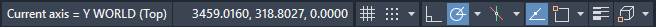 UCS 图标,带有 RTUCS 轴线和显示当前轴信息的状态行: