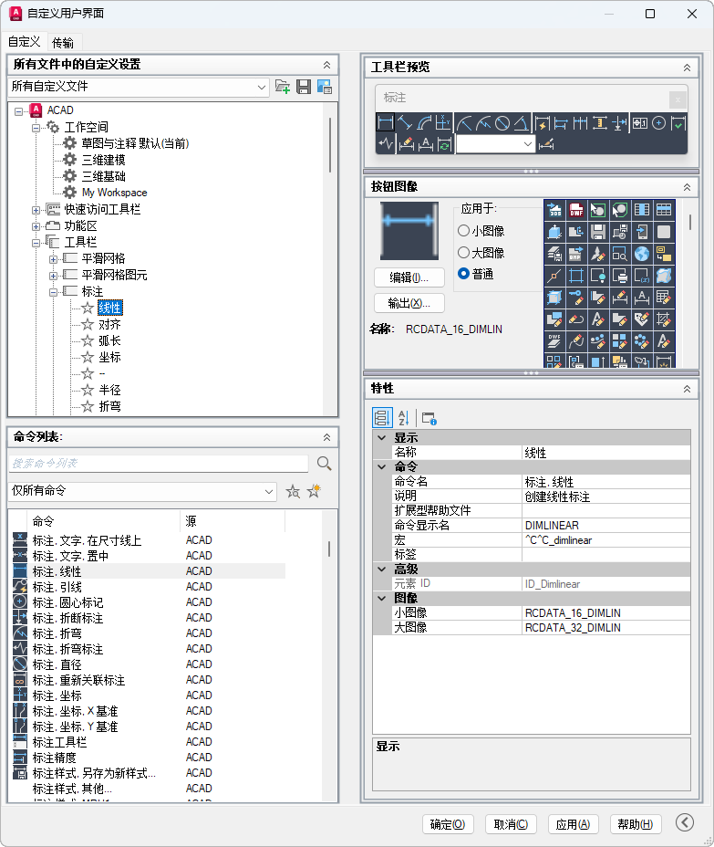 提供一个界面,用于自定义工作空间、工具栏、菜单、功能区面板、快捷菜单和其他用户界面元素。
