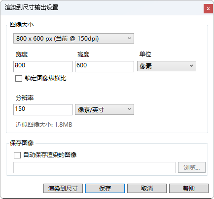 - 在渲染到“渲染”窗口时,指定渲染图像的输出尺寸和分辨率。