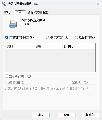 “端口”选项卡(“绘图仪配置编辑器”)