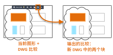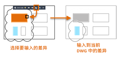 在“DWG 比较”工具栏中,可以将比较图形中的差异输入到当前图形中。仅比较图像中存在差异的对象才能输入到当前图形中。