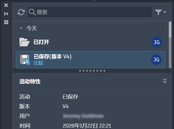注: 当前,AutoCAD LT 仅在“活动见解”选项板上显示“版本”活动。
