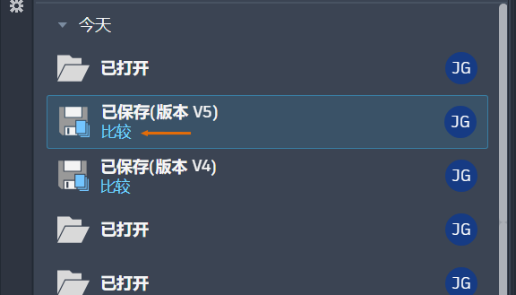 在支持的云存储提供商(如 Forma Data Management、Google Drive、OneDrive、Box 或 Dropbox)中使用“活动见解”时,每次保存时都会记录每个图形的新版本。单击每个版本图块上的“比较”,可轻松比较以前版本和当前版本。