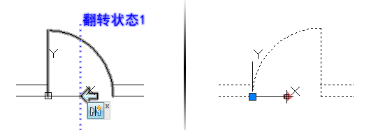 翻转动作围绕指定的投影线对动态块参照中的选定的对象进行镜像。