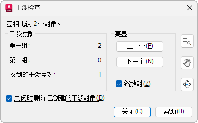 如果选定该选项,将关闭对话框并删除干涉对象。