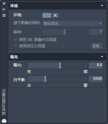 您可以使用“渲染环境和曝光”选项板设置场景的全局照明。