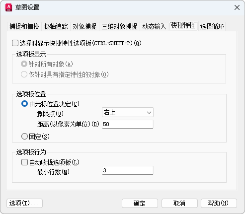 指定相对于光标的四个象限之一,以显示相对于光标位置的“快捷特性”选项板。默认位置为光标的右侧上方。
