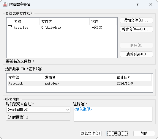 将数字签名附着到您指定的文件。