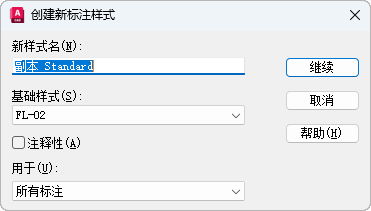 可以命名新标注样式、设定新标注样式的基础样式和指示要应用新样式的标注类型。