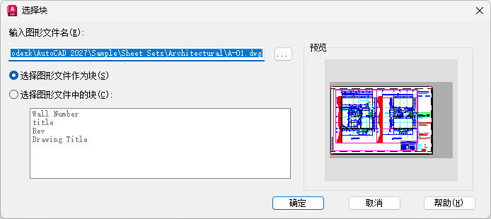 使用指定的整个图形文件或图形样板文件作为块定义。