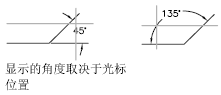 程序通过将每条直线作为角度的矢量,将直线的交点作为角度顶点来确定角度。尺寸线跨越这两条直线之间的角度。如果尺寸线与被标注的直线不相交,将根据需要添加尺寸界线,以延长一条或两条直线。圆弧总是小于 180 度。