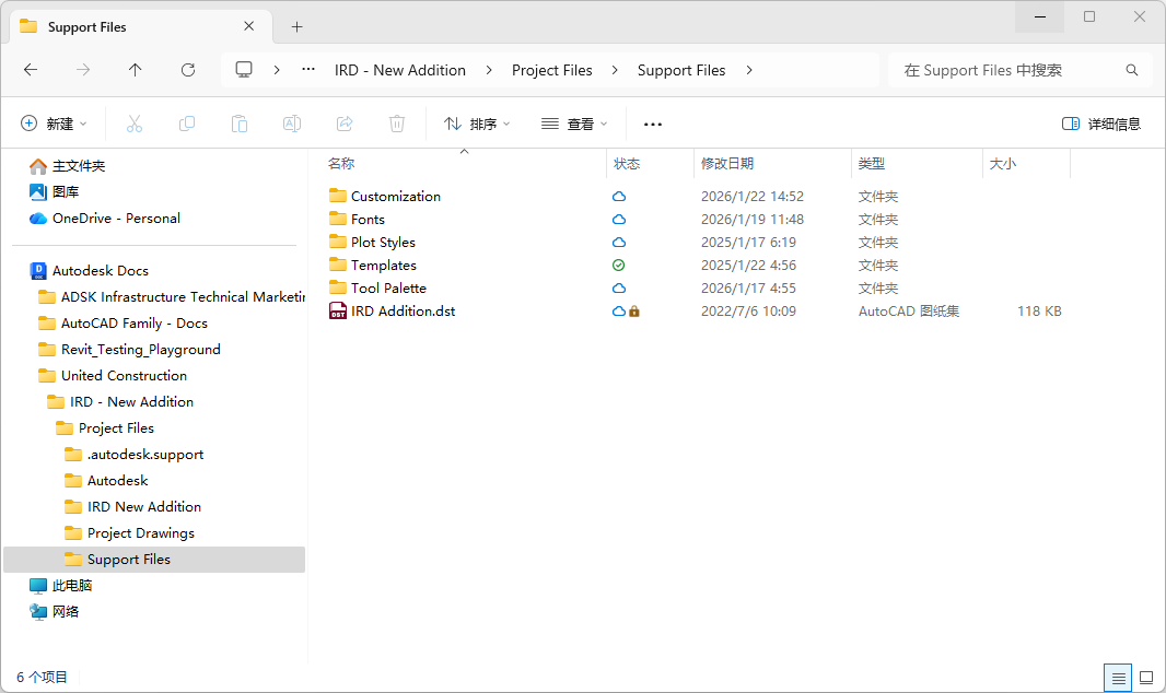 添加到本地文件夹的支持文件将使用 Desktop Connector 同步到 Autodesk 项目。