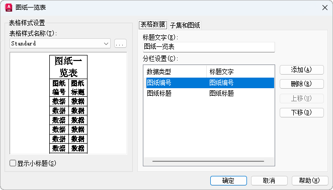 注: 如果激活了“模型”选项卡,或当前布局不是当前图纸集中的图纸,则图纸集快捷菜单上的“插入图纸一览表”不可用。