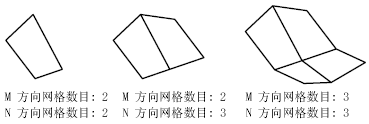创建网格时,需指定网格在 M 和 N 方向上的大小。为网格指定的总顶点数等于 M 乘以 N 的值。